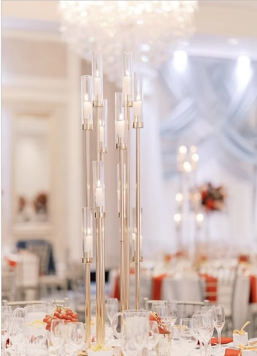 A stunning 10-head crystal centerpiece lamp designed to create a soft, luxurious glow across wedding reception tables.